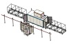 Die Durchlauf-Spritzkabine ermöglicht es, dass langgestreckte Werkstücke von einer Öffnung eintreten und von einer anderen Öffnung austreten, während sie von den seitlichen manuellen Beschichtungsmaschinen mit Pulver besprüht werden. Die Bewegung der Werkstücke erfolgt manuell über die Schienen an der Decke. Nach dem Beschichtungsvorgang entlädt der Bediener die Werkstücke und bewegt die Chargen auf den Bodenwagen, der zum Ofen für den Pulverhärtungsprozess geschoben wird.
